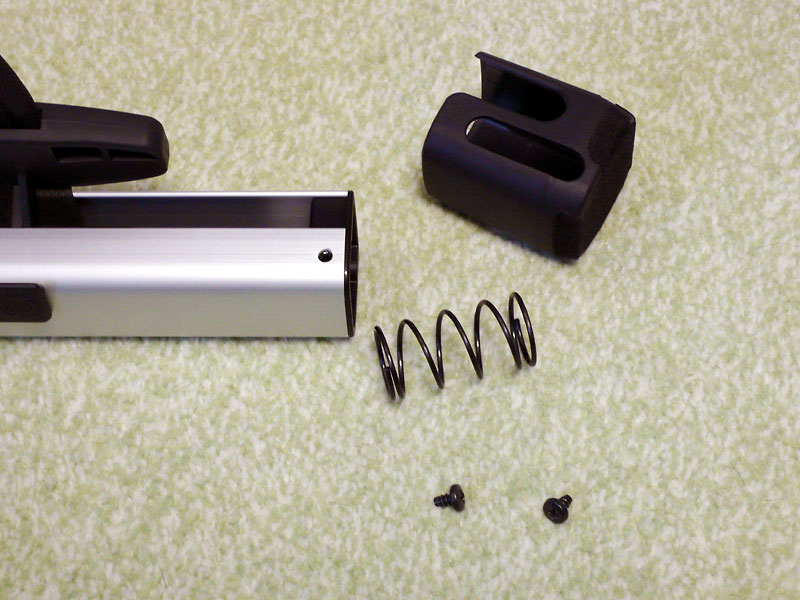 異音:ピキッ! と思ったら、やっぱりトノカバーから異音が出始めました。段差などでビシバシ結構うるさくなってきたため、対策してみます。 スペックCなのにトノカバー付き???という突っ込みはこの際おいといて・・・ チェックしてみると音はトノカバーの両端から出ているようです。アルミのバーとプラスチックが擦れて音がしている感じですので、まずこの部分をばらします。(材質的に柔らかいプラスチックが使用されており、音が出るようには感じないのですが・・・)