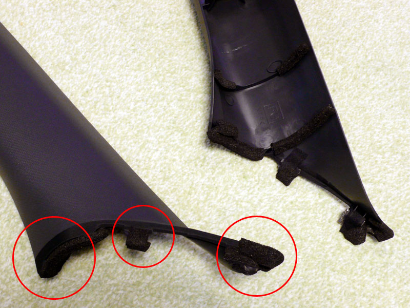 異音:ミシッ! 気温が低い時などAピラーの付け根付近からミシミシ音が出てきます。 この車に限らずここは異音が出やすい場所ではあります。一応対策はされているようですが十分ではないようで、 段差などで時々きしみ音がでます。 ダッシュボードやフロントガラスと接する部分を中心にアセテートテープやエプトシーラーで対策します。