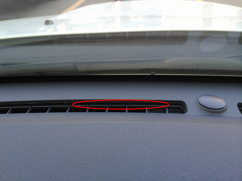 異音:ビリビリ タイヤが古くなってきたせいか荒れた道を走った時などに時々ビリビリ音がします。 赤で囲んだ位置を押さえると音が止まります。曇り除去用ブロアーの吹き出し口のパーツと干渉して音が出るようです。 隙間にエプトシーラーを詰め込んで対処しました。エプトシーラーの粘着テープが邪魔でなかなか隙間に入りませんでしたが無理矢理押し込んでいます。 写真は助手席側ですが、運転席側も同様に処理しています。