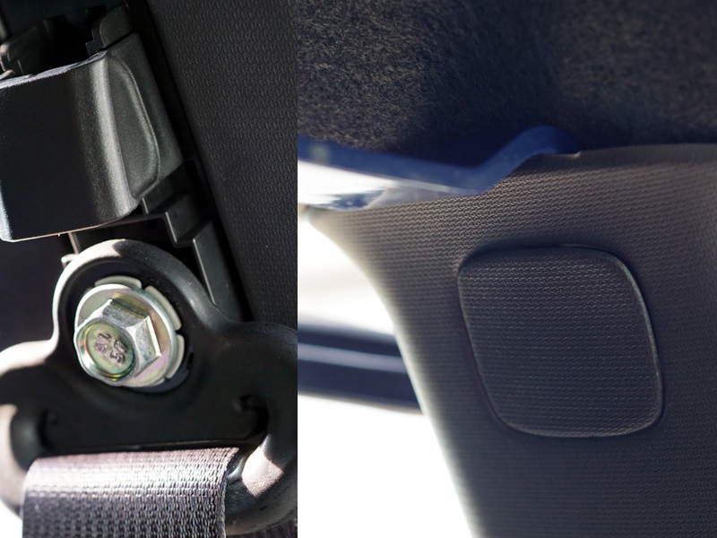 Bピラーの内貼りを取り外すためには、シーベルトを固定しているボルトと内貼りの上部を固定しているボルトを緩めて取り外す必要があります。