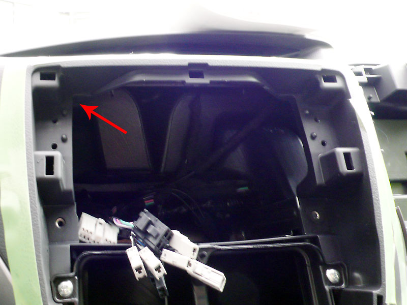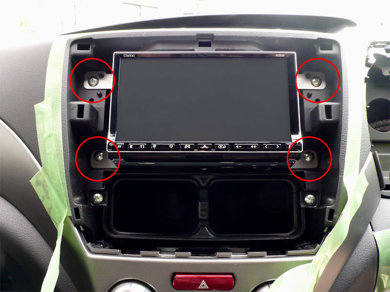 このパネルはクリップで固定されているだけなので傷が付かないようマスキングして、写真の位置から少しずつ内装剥がし等を押し込んでいくと外れてきます。 インプレッサの内装はとても傷が付きやすいため、マスキングしてから慎重に作業します。