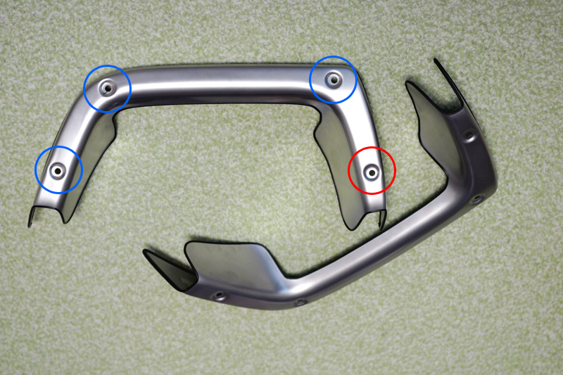 ボルトはただの意匠かと思っていたら、実際に取り付けに使用されていたのですね!(ただし取り付けは青丸で囲んだ3箇所で行い、赤丸で囲んだ一番内側の1箇所は飾りです。)