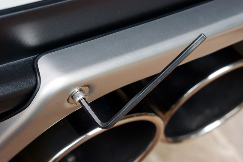 このフィニッシャーはステンレス製ですが、ただの見た目パーツで、バンパーをマフラーの熱から保護するなどの意味は無いようです。(社外製のマフラーを付けた場合などは少しは効果があるのかも・・・) このエギゾーストフィニッシャーを取り付けることによって 0.6kg (取り付けビスなどを含む) 重量増になってしまいます。