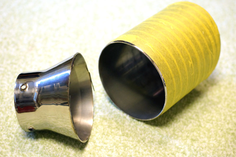 マフラーカッターで見た目だけ改善できないものか試行錯誤してみました。スペックCに、こんなものを取り付ける人はいないかもしれませんが、ノーマルタイプやR205にも応用できそうですので参考にしてみてください。 なお、マフラーカッターが脱落するととても危険ですので、真似される方はくれぐれも注意し、自己責任において行ってください。最終的にはチップを溶接することをお勧めします。 斜めカットでステンレス素地色のマフラーカッターを探していたのですが、GRB に取り付け可能なものは見つかりませんでした。仕方がないので、汎用品を改造して取り付けてみようと思います。 今回購入してみたのは CHARGESPEED と言うメーカーの C-7A というマフラーカッターです。(C-7A はもう無いようですが、D-1 なんかも良さそうなカッターですね)
