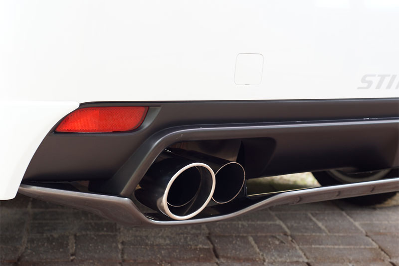 GRB のマフラーはデュアルタイプとなっていて2つの出口が接近しているため、マフラーカッターが干渉しないように取り付ける必要があります。