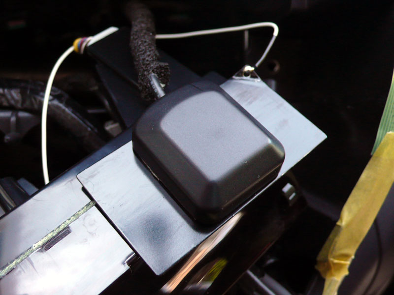 通常 GPS アンテナはダッシュボード上へ設置するように指示されていますが、邪魔なのでダッシュボード内へ隠ぺいします。