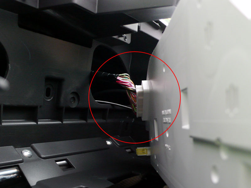スピードメーターの裏側に1箇所コネクターが刺さっていますので、これを外すと完全にスピードメーターが外れます。