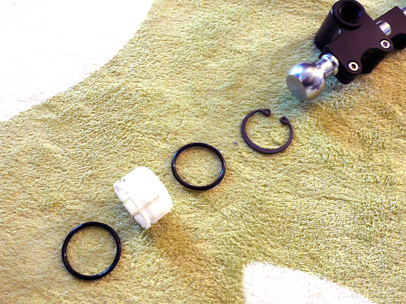 アジャスタブルシフターのレバーを純正レバーがあった位置に差し込み、スナップリングで固定した後、