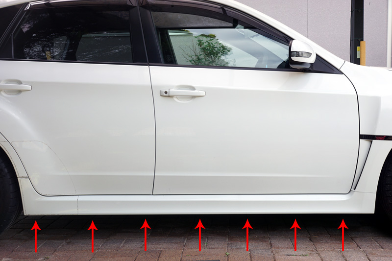 ボディ側面を流れる空気を整流し、走行安定性を高め、更に WRX STI のスタイリッシュなボディラインをスマートに演出するエアロパーツだそうです。 フロントリップスポイラーを取り付けると、サイドやリアが寂しく感じるため取り付けしてみました。 このサイドアンダースポイラーを取り付けることによって 1.0kg (取り付けビス等を含む) 重量増になってしまいます。