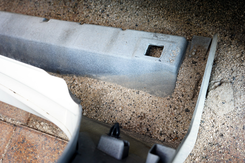 サイドスポイラーの後ろ側から外した方がやりやすいと思います。 外してみると、中に大量の砂や小石が入っていてびっくりしました。