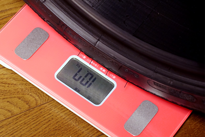 1本だけ持ち帰り測定してみたところ、古い POTENZA RE070 の重量は 12.0kg でした!